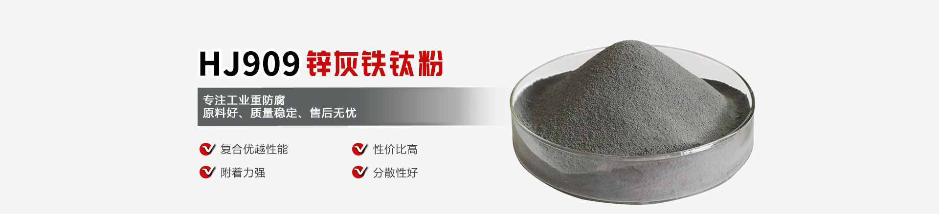 HJ909鋅灰鐵鈦粉是以超細磷鐵粉為載體,復合一定量的無毒顏料經過表面高溫包覆處理和復合屏蔽性基料共同作用而成。通過多種有機助劑對超細粉體及顏料表面進行高溫處理,使其在顏料表面形成致密的包覆層,能有效阻隔水分子、氧氣及其他氣體對鋼鐵的侵蝕,極大增強了顏料在鋼鐵表面的附著力,從而具備了優良的防銹能力。