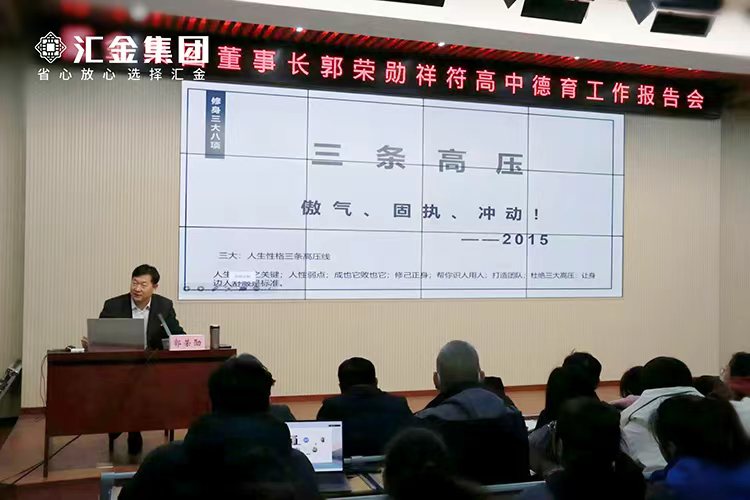 分享會上,郭榮勛董事長將匯金集團企業文化與青少年成長的實際需求相結合,圍繞修身三大八項、做人、做事以及核心文化展開論述。郭董強調:“學生的使命,即三年高中的終極使命——讓知識改變命運,改變自己的命運、改變父母的命運、改變家族的命運!”從做人的道理到做事的方法,從學習目標的制定到人生方向的規劃,郭董以自身的拼搏歷程為鑒,娓娓道來。兩個小時的分享,同學們全程聚精會神,深受觸動。